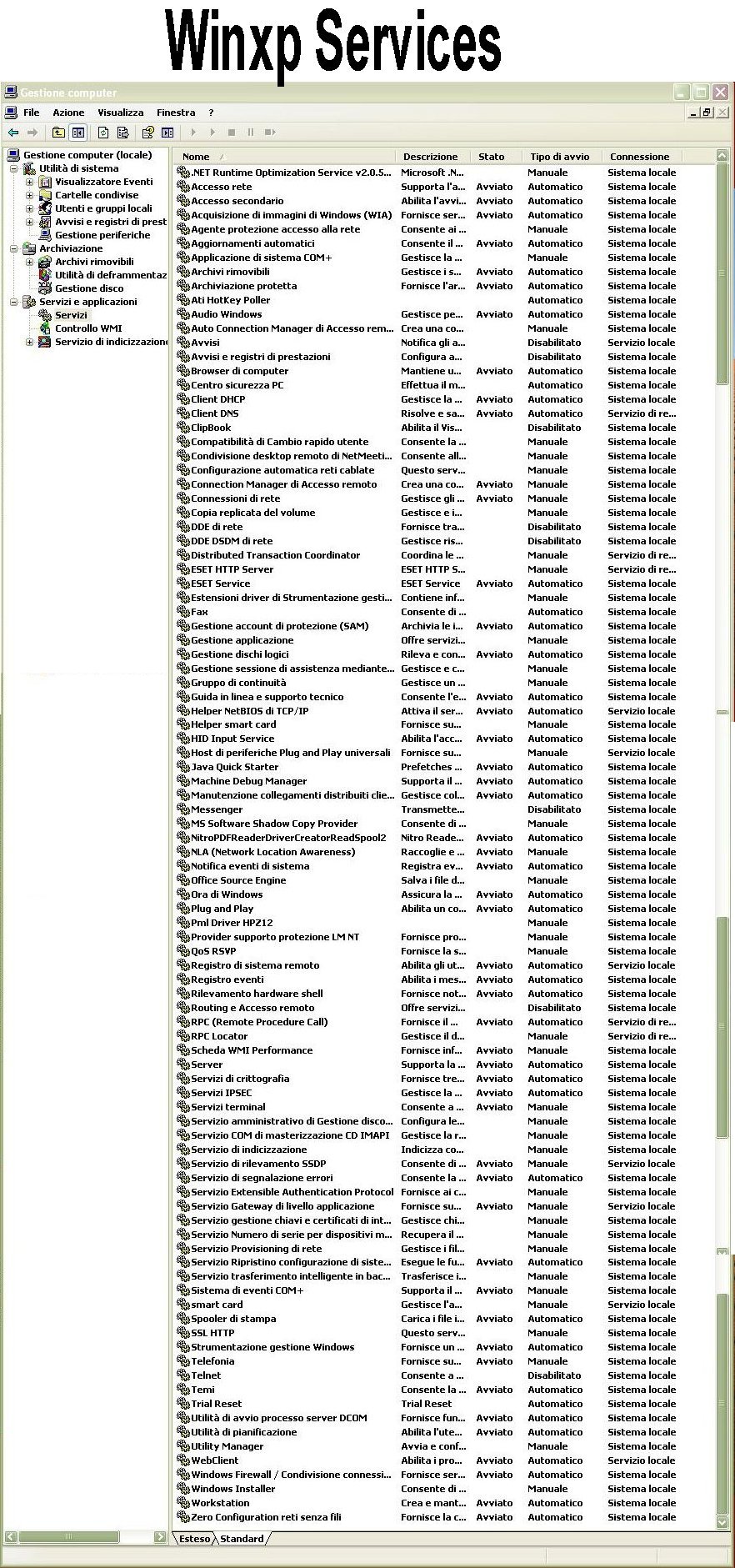 I servizi dei clients per Windows Xp